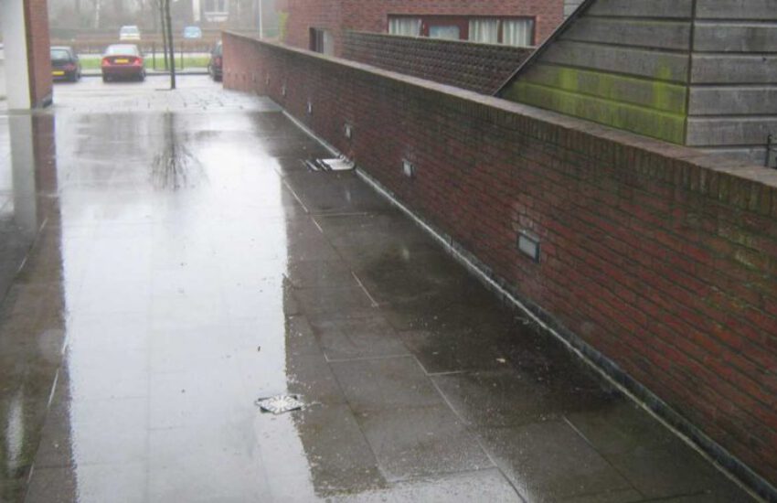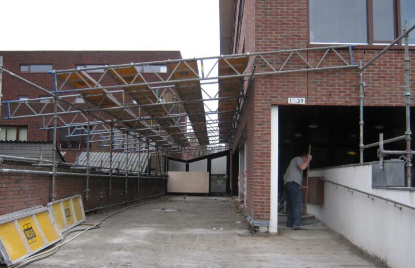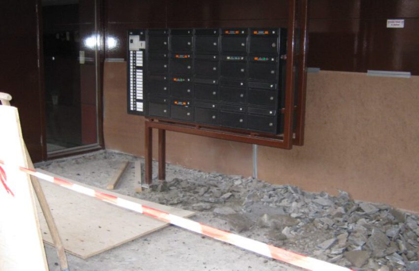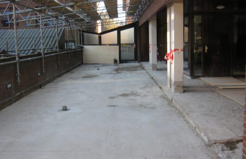Bij dit appartementencomplex hebben we renovatiewerkzaamheden uitgevoerd bij het entreegebied als gevolg van lekkages. We hebben een hoogreactief gespoten pu-membraan aangebracht als kelderdakafwerking. Hierna hebben we deze voorzien van een hoogwaardige natuursteenafwerking. Door gebruik van een tentconstructie was er geen uitloop door weersverlet.